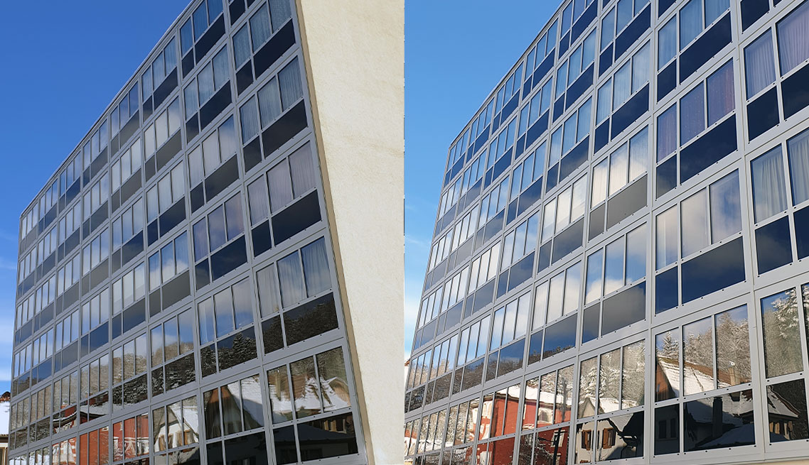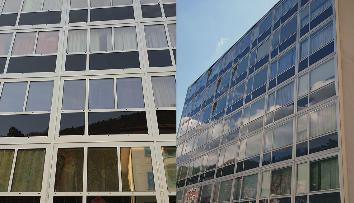 Sistemul de montaj a fost adaptat cladirii folosind si sistemul initial existent.
